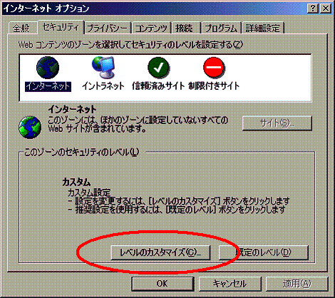 セキュリティの「レベルのカスタマイズ」