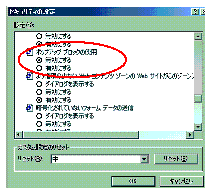 「ポップアップブロックの使用」を「無効にする」