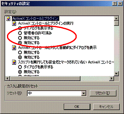 「ActiveXコントロールプラグインの実行」を「有効にする」