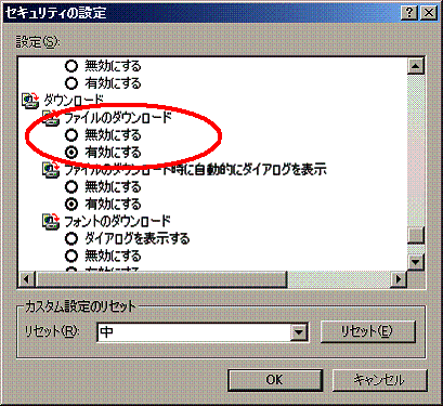 「ファイルのダウンロード」「有効にする」